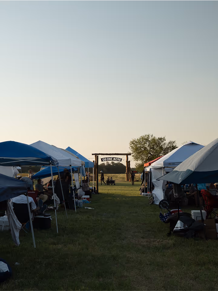 Each participant is allocated a 3x3 meter space at the base camp, marked in advance and assigned on a first come, first served basis. As runners drop out during the race, remaining camps may be moved closer to the starting line.